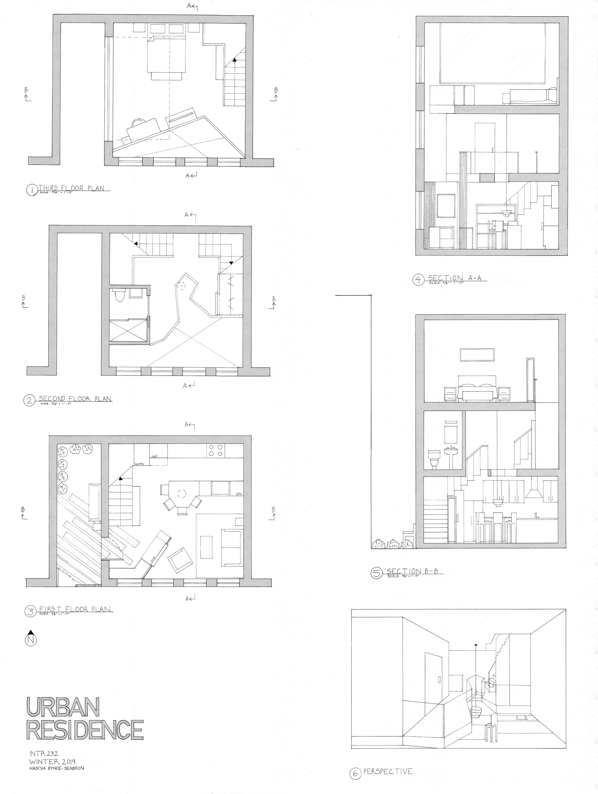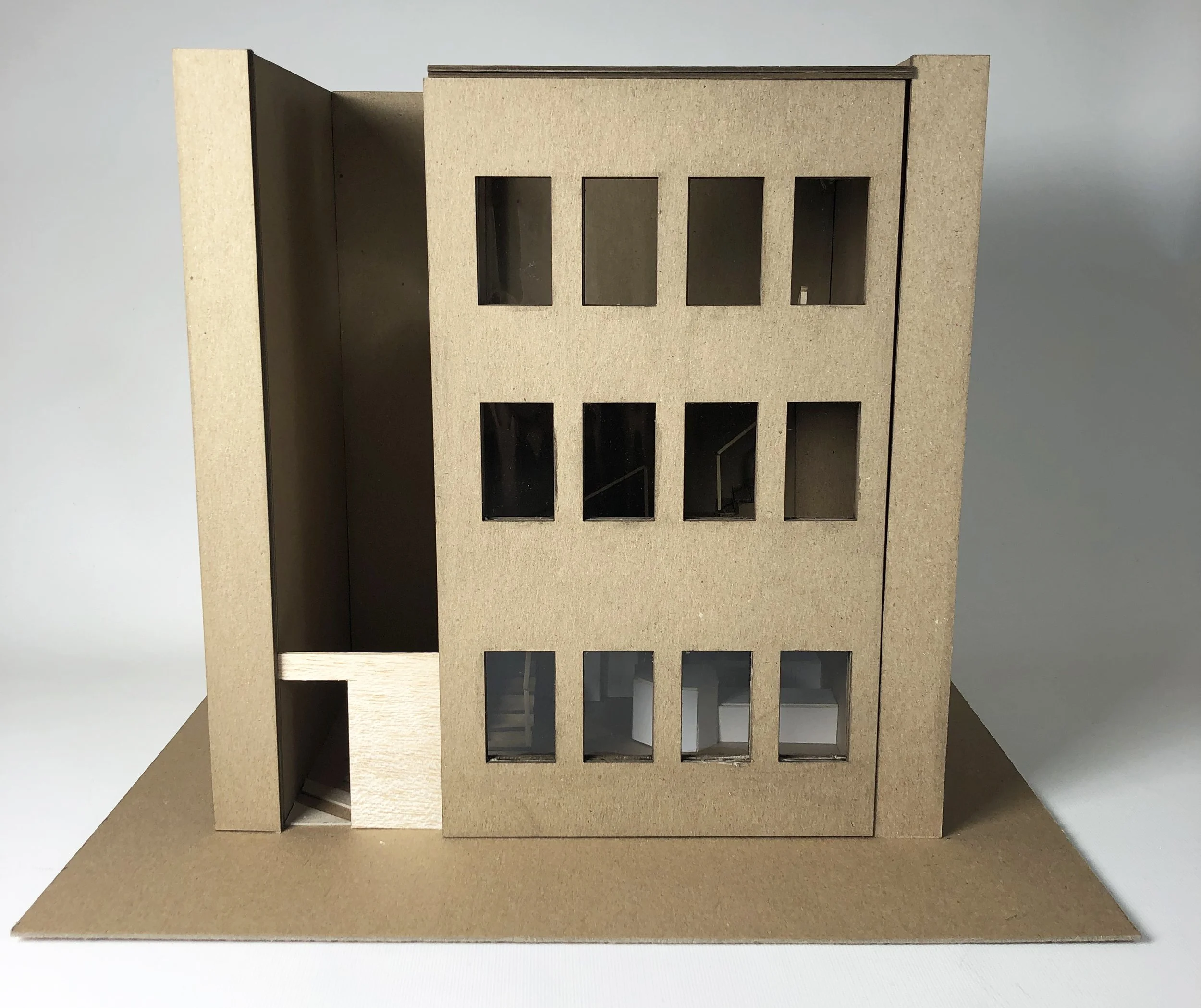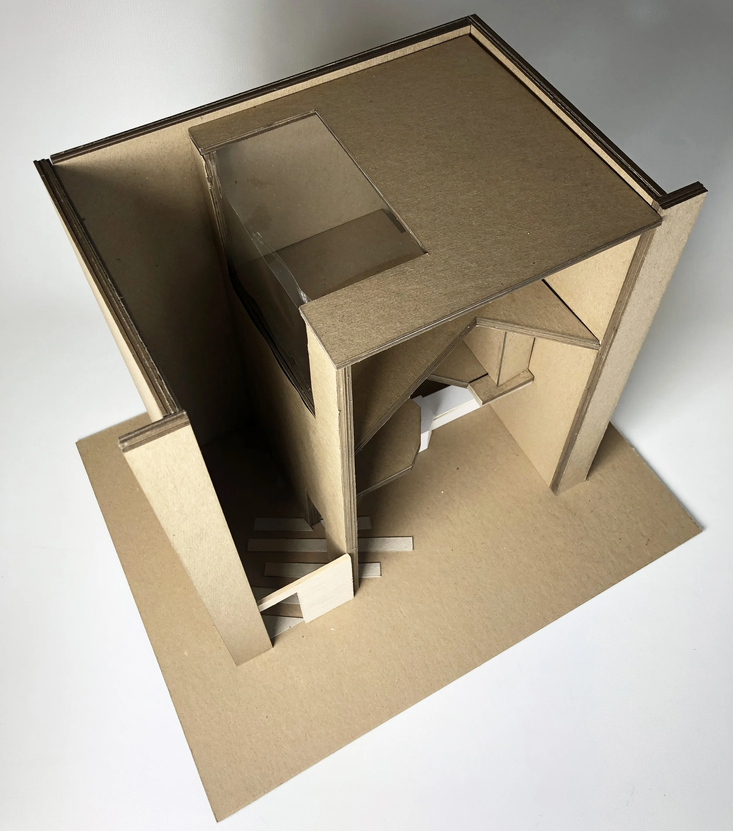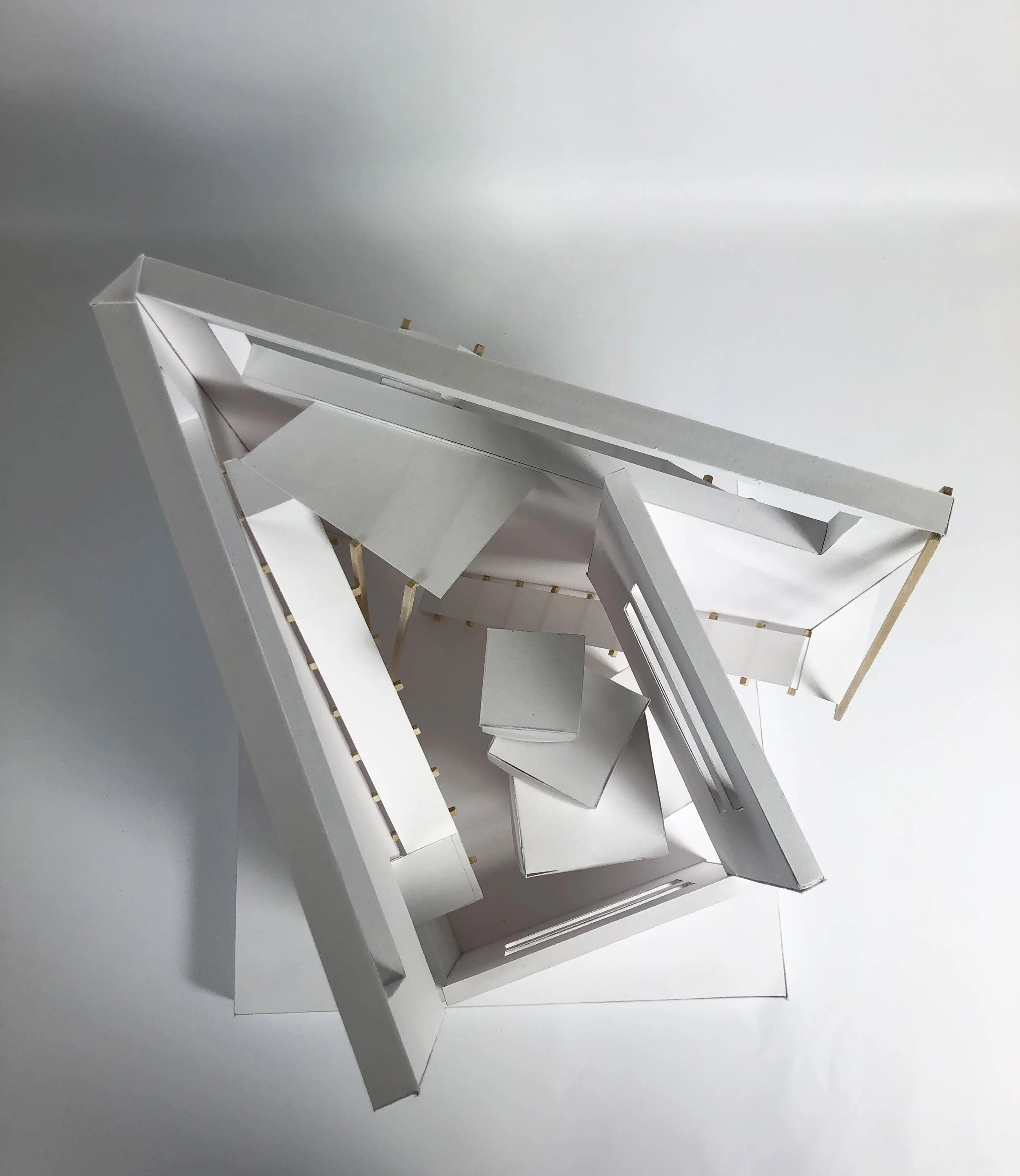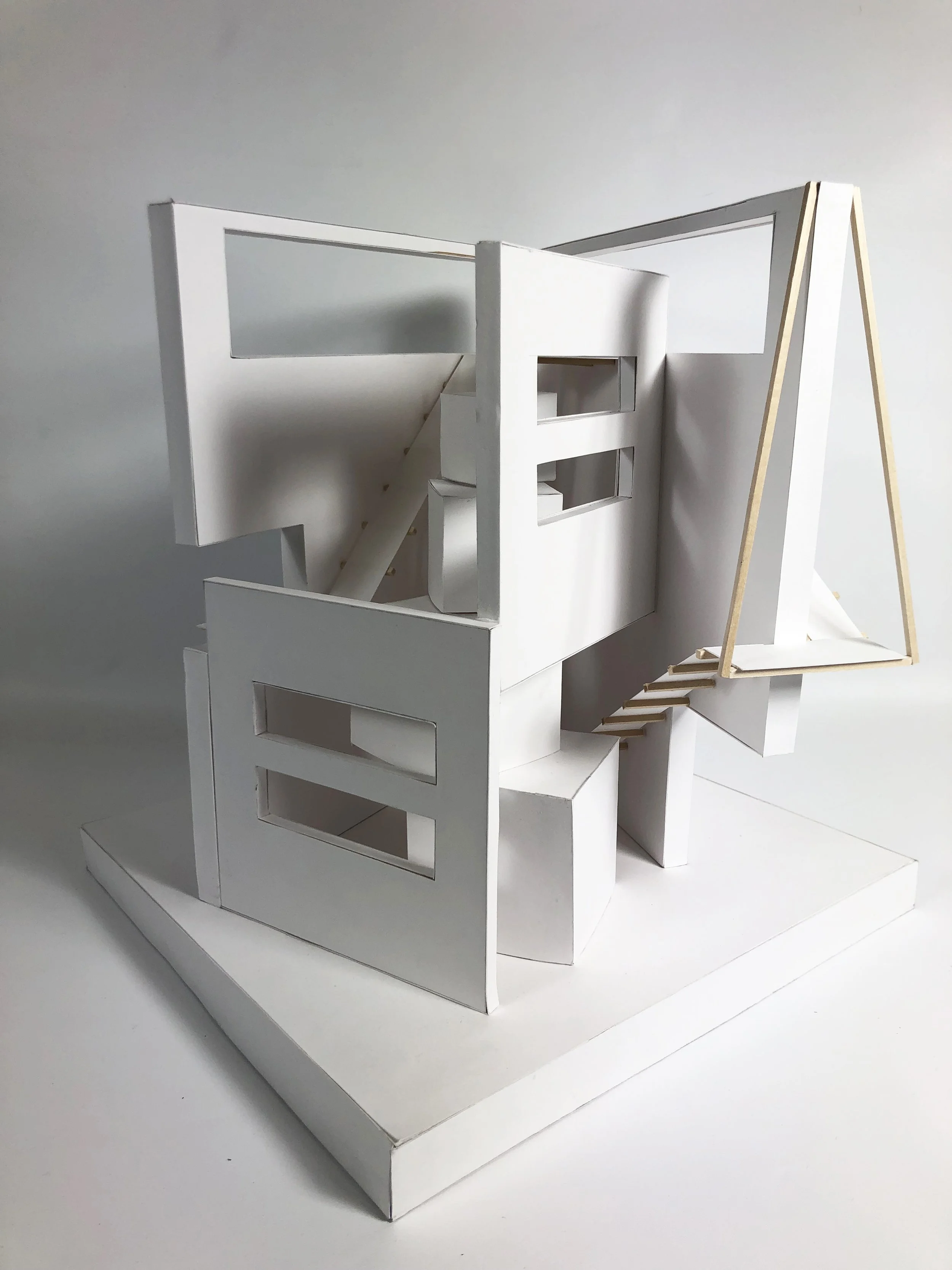 A model built as a conceptual viewing space, constructed using only four walls and ramps. This project presented the challenge of orthographically free-hand drafting a physical design.